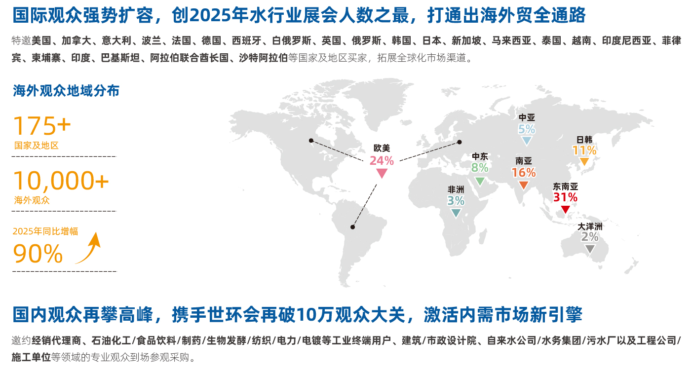 汇聚业界精英,共襄交流盛举。上海国际泵阀展与世环会系列展强强联合,携手超过420多家权威协会及媒体机构深度合作,精心策划并成功举办近百场主题论坛,深度聚焦“建筑给排水、大模型在供水应用、数字水务、高品质饮用水、化工医药、钢铁冶金、工业废水处理、节水与污水处理、水质监测”等热点议题,邀请1,000+行业专业人士莅临现场,共探行业未来,促进技术交流与合作,开启行业升级转型的新篇章。