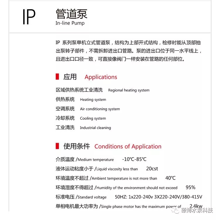 颐博是一家以“创国际一流品质、树国际一流品牌”为目标的中德合资集水泵及水泵系统研发、设计、制造、销售、服务一体化企业。我们以“让生活更舒适、让你我更美好”为使命,以“诚信、一家亲;创新、可持续”为核心价值观,以“德国严谨、中国速度”为特点竭诚为我们的客户和伙伴提供全面周到的服务。 颐博品牌核心注重以人为本,生活与产品的和谐。因此,我们基于客户的感受和体验出发,致力于为客户提供全系列智能水泵和水泵系统。主要产品:ip管道泵、pl微型管道泵、pe微型端吸泵、pq屏蔽泵、ps自吸泵、hm(l)卧式多级泵、vm(l)立式多级泵、wp潜水泵、dw深井泵、spf智能污水提升泵(泵站)、智能供水设备、雨水利用及喷淋设备、深井智能供水设备、 及水泵智能控制系统。产品广泛用于家用、商用、及工业领域的暖通空调系统、供水系统、排水系统。 我们会将水按照需求,高效的、环境友好的、便利的输送到需要的地方。