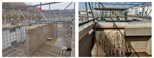 (白塔污水处理厂三期生反池南侧一组通水前后)